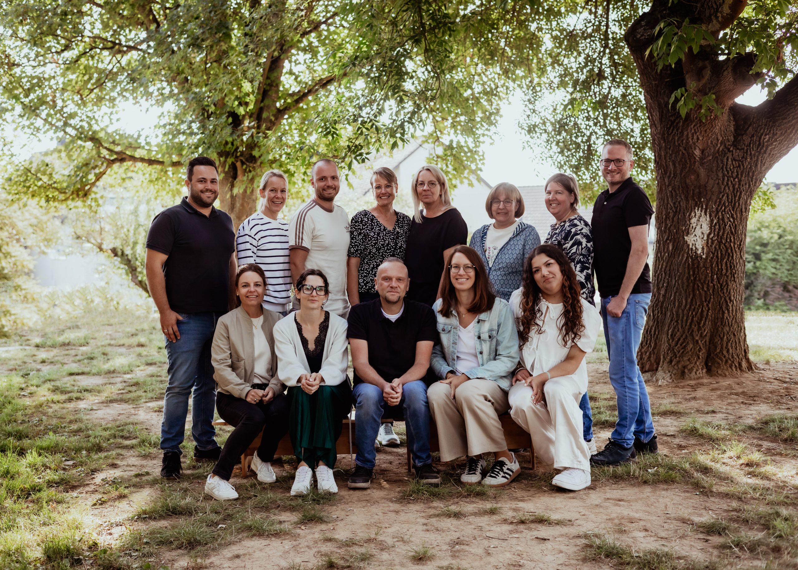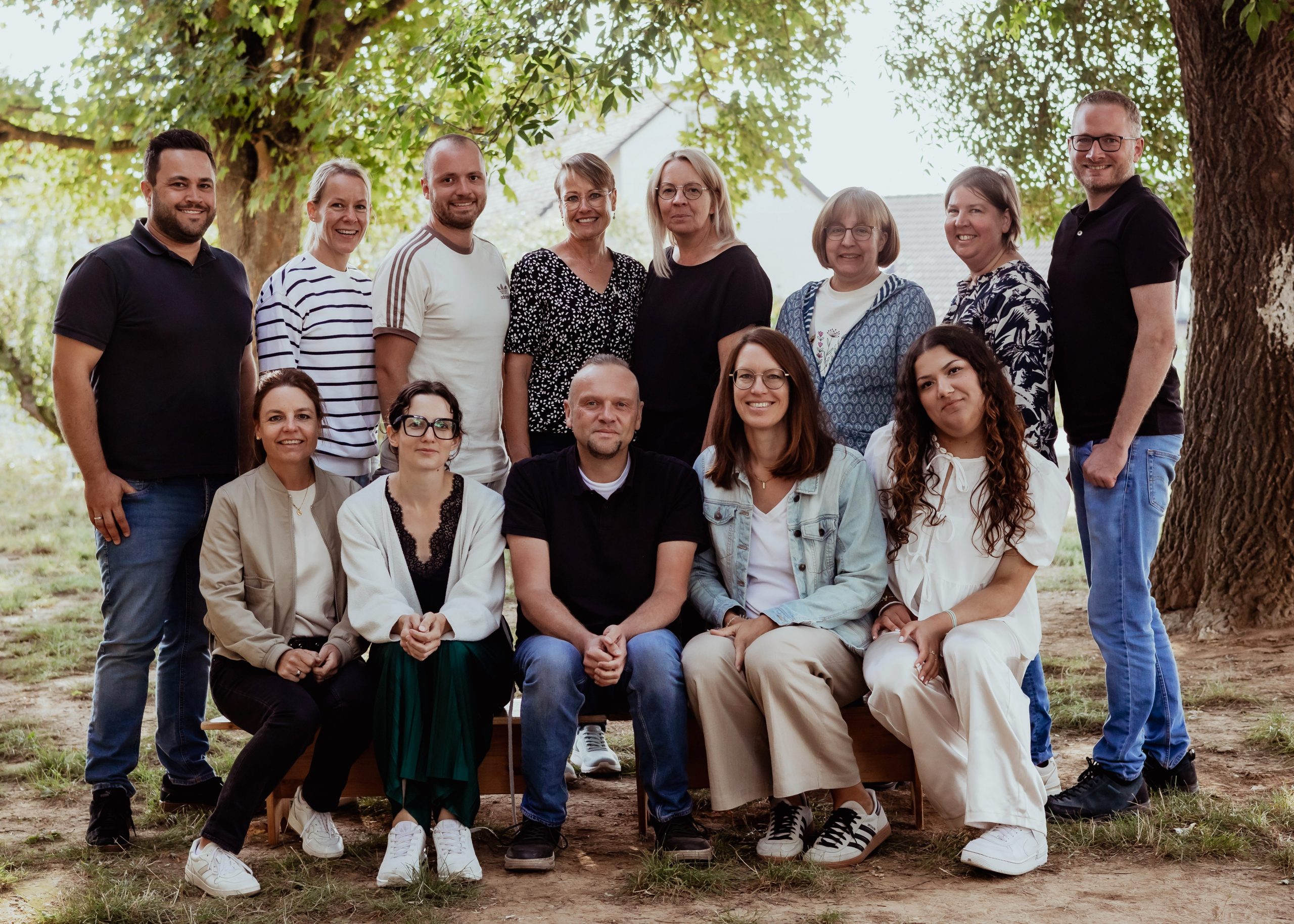 Vordere Reihe von links: Frau Döhrer, Frau Schlüter, Herr Koch, Frau Hilpisch (UBUS), Frau Bullmann (FSJ) – Hintere Reihe von links: Herr Allgaier, Frau Thorn, Herr Neuroth, Frau Pilz, Frau Seifert, Frau Heun (BFZ), Frau Philipp, Herr Schupp (Bild: Photographie RosaRot)